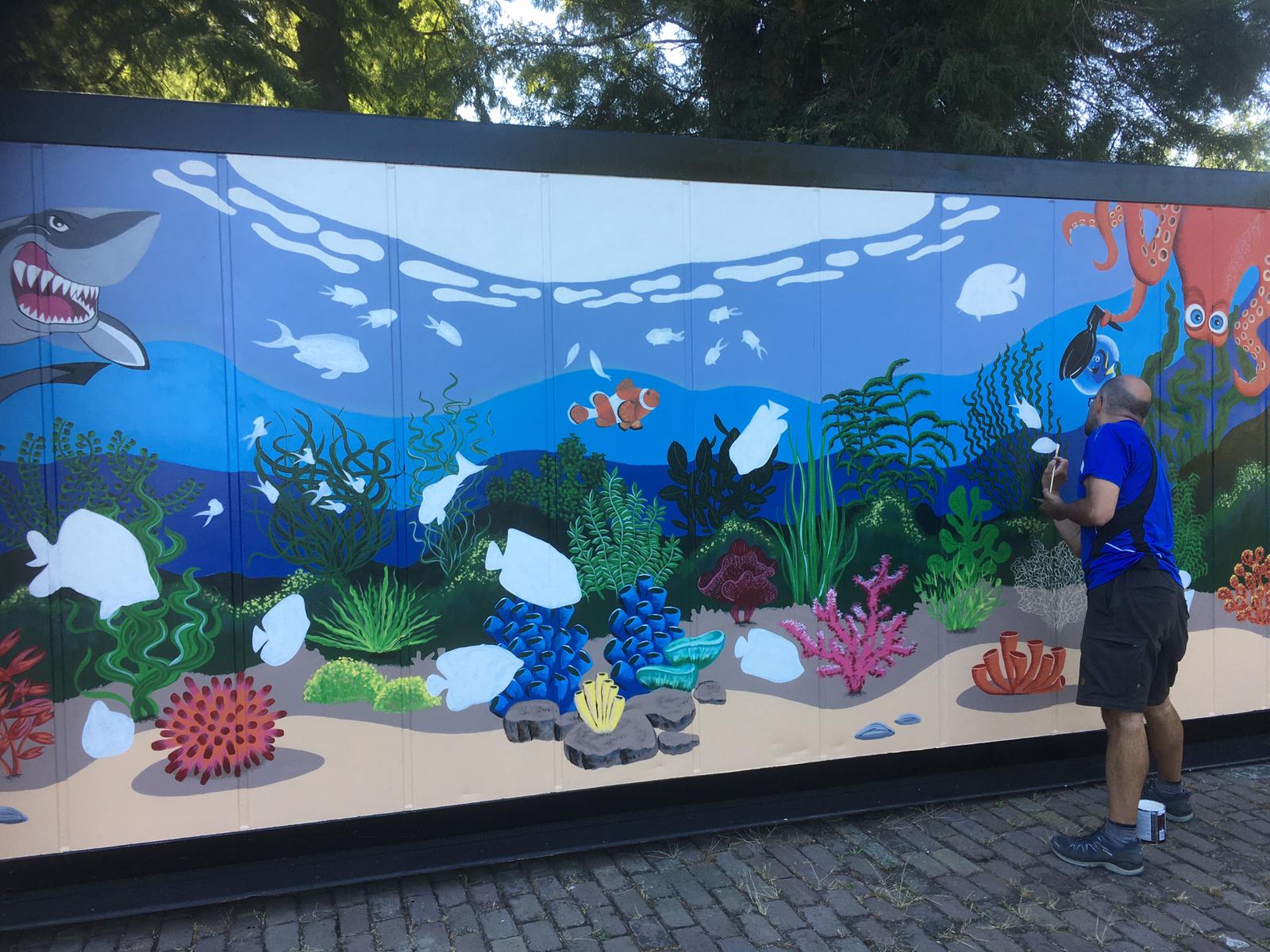 De lelijk uitziende opslag container werd omgetoverd door Street Artist Rolf de Bakker.